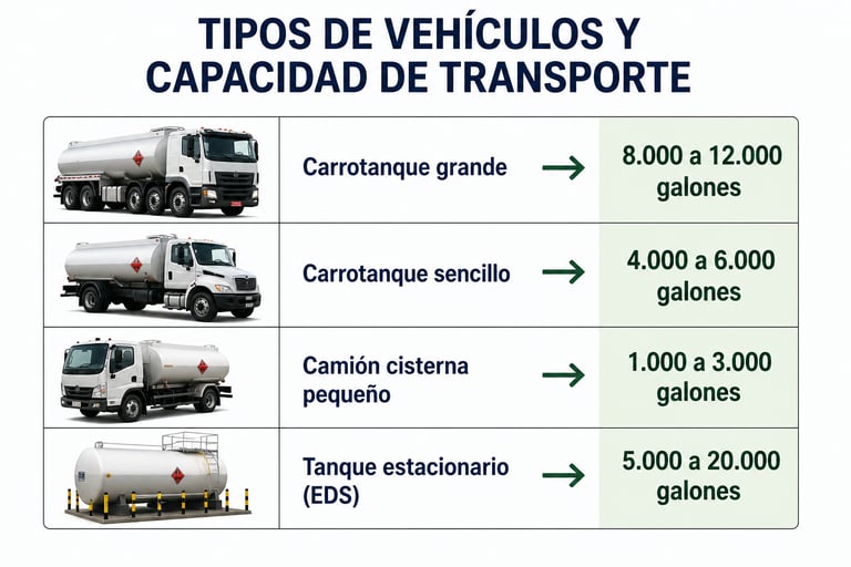 Tipos de vehículos y capacidad de transporte